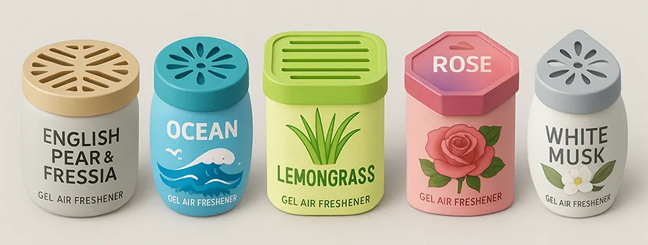 Gel air fresheners contain fragrance-infused gel sealed inside a plastic container, allowing steady and consistent scent release.