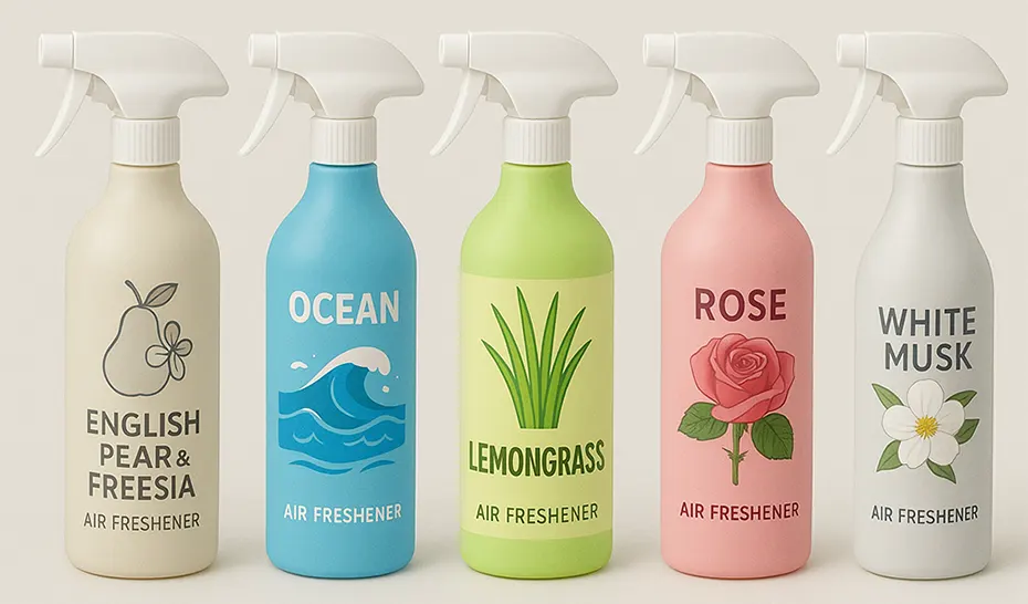 Spray air fresheners come in aerosol cans or manual pump bottles, allowing instant fragrance release at the push of a button.
