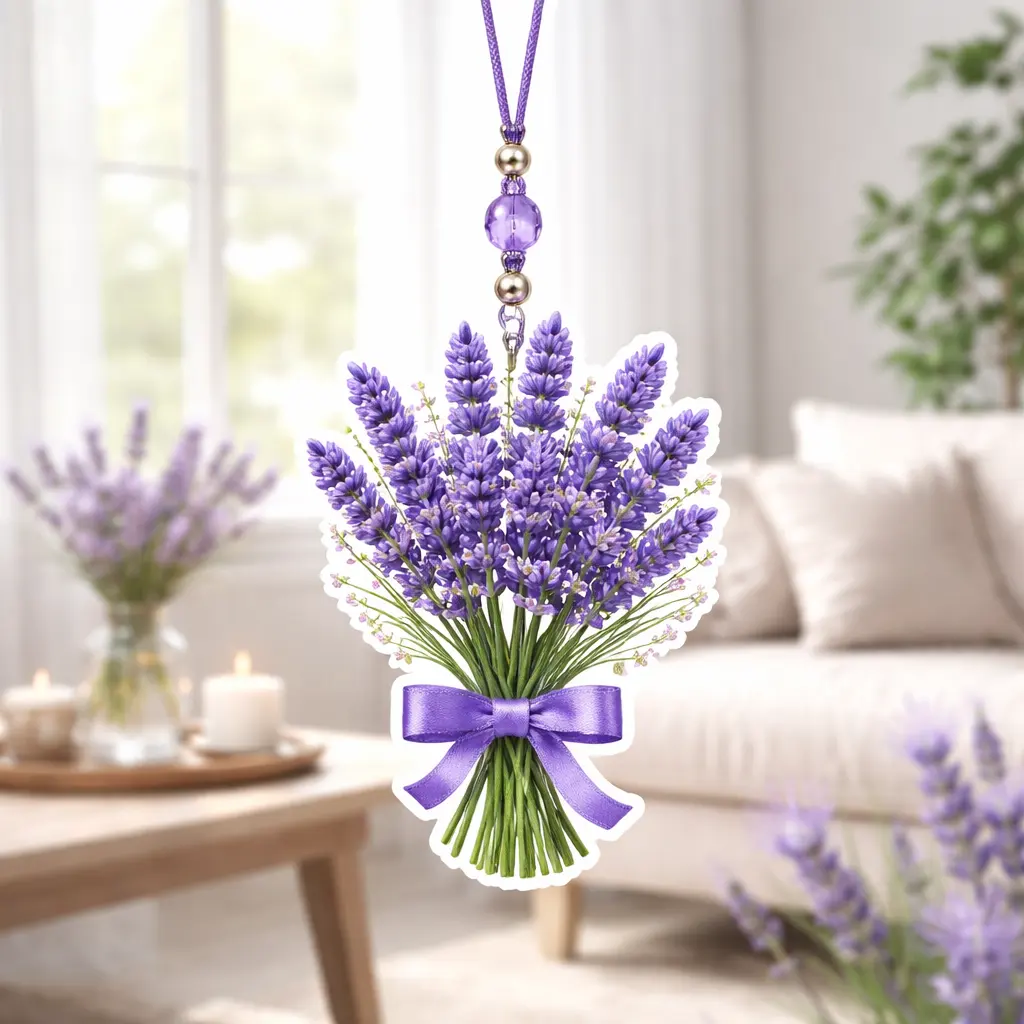 Description This lavender hanging air freshener is designed to create a calm and relaxing atmosphere in your everyday space. Featuring a delicate bouquet design with soft purple tones, it adds both fragrance and elegance to your surroundings. Made with a 3-layer structure (Paper + sponge + Paper), it ensures a steady and long-lasting scent release ... Read more