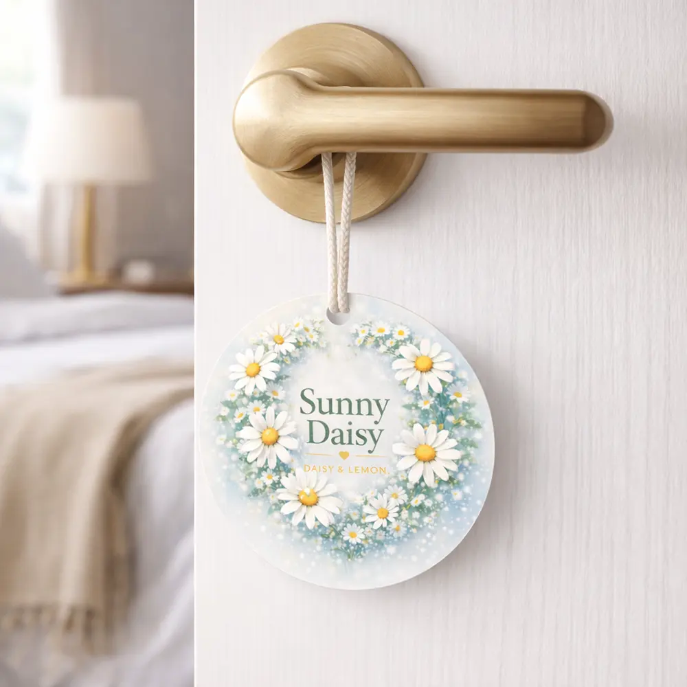 Description Bring a touch of nature and freshness into your space with this beautifully designed Sunny Daisy hanging air freshener. Featuring a delicate daisy wreath illustration and soft pastel tones, this scented paper card combines visual elegance with long-lasting fragrance. Made from high-quality absorbent paper with a 3-layer structure (Paper + Sponge + Paper), it ... Read more
