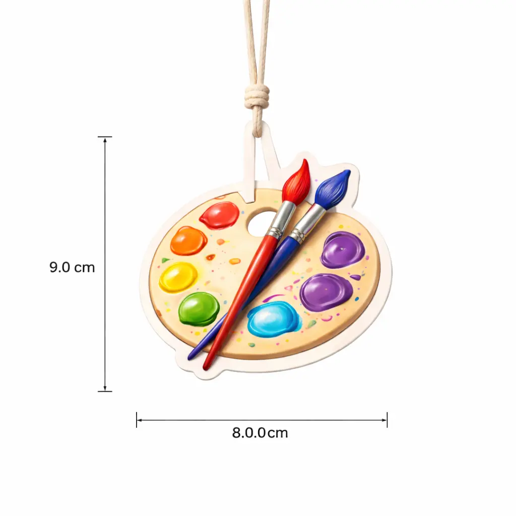 Bring a creative and colorful atmosphere into your space with this artist palette hanging air freshener. Designed with vivid paint details and realistic brush elements, it adds a unique artistic touch while delivering a pleasant and long-lasting fragrance.