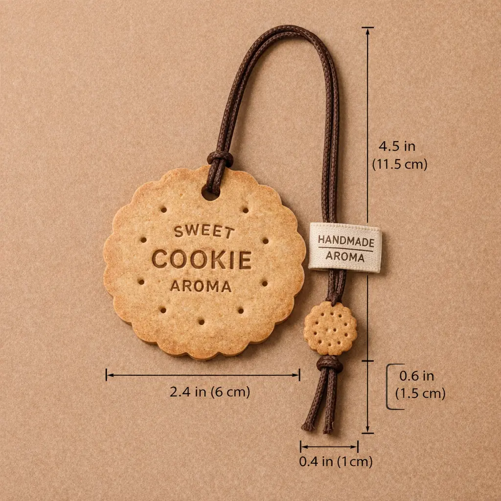 This cookie-shaped hanging air freshener is designed to bring a warm and comforting atmosphere inspired by freshly baked treats. With its realistic biscuit design and soft brown tones, it adds a cozy and delightful touch to your space.