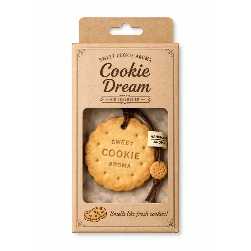 This cookie-themed paper air freshener gift set features biscuit-inspired designs, sweet dessert elements, and warm bakery-style visuals, creating a cozy and comforting atmosphere for everyday use. Each piece is made from high-absorbency paper to ensure a long-lasting and pleasant fragrance.Perfect for cars, homes, kitchens, cafés, and gift sets, this air freshener combines cute visual appeal with functional scenting. Custom branding options are available for promotional campaigns, dessert-themed products, and retail gifts, offering a delightful way to showcase your brand with a sweet and inviting touch.