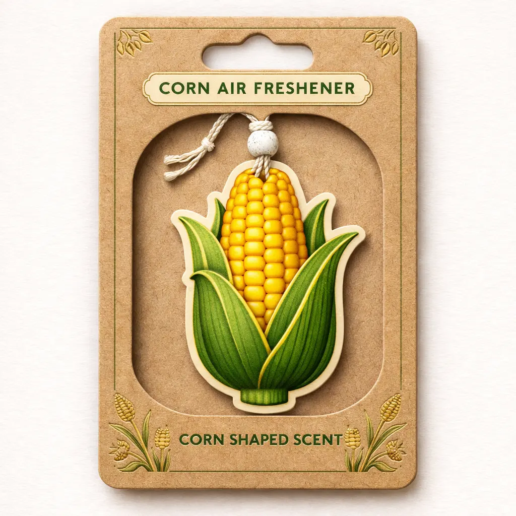 Celebrate everyday freshness with this unique Corn Shaped Hanging Paper Air Freshener. Featuring a realistic corn design, each piece is crafted from premium absorbent paper and infused with long-lasting, natural-inspired fragrance.Perfect for kitchens, cabinets, cars, or home use, this hanging air freshener helps reduce unwanted odors while adding a warm and natural decorative touch to any space. Designed with a 3-layer structure (Paper + Sponge + Paper), it ensures a steady and balanced scent release.Fully customizable in shape, fragrance, and packaging, it is an ideal choice for brands, retailers, and promotional use.