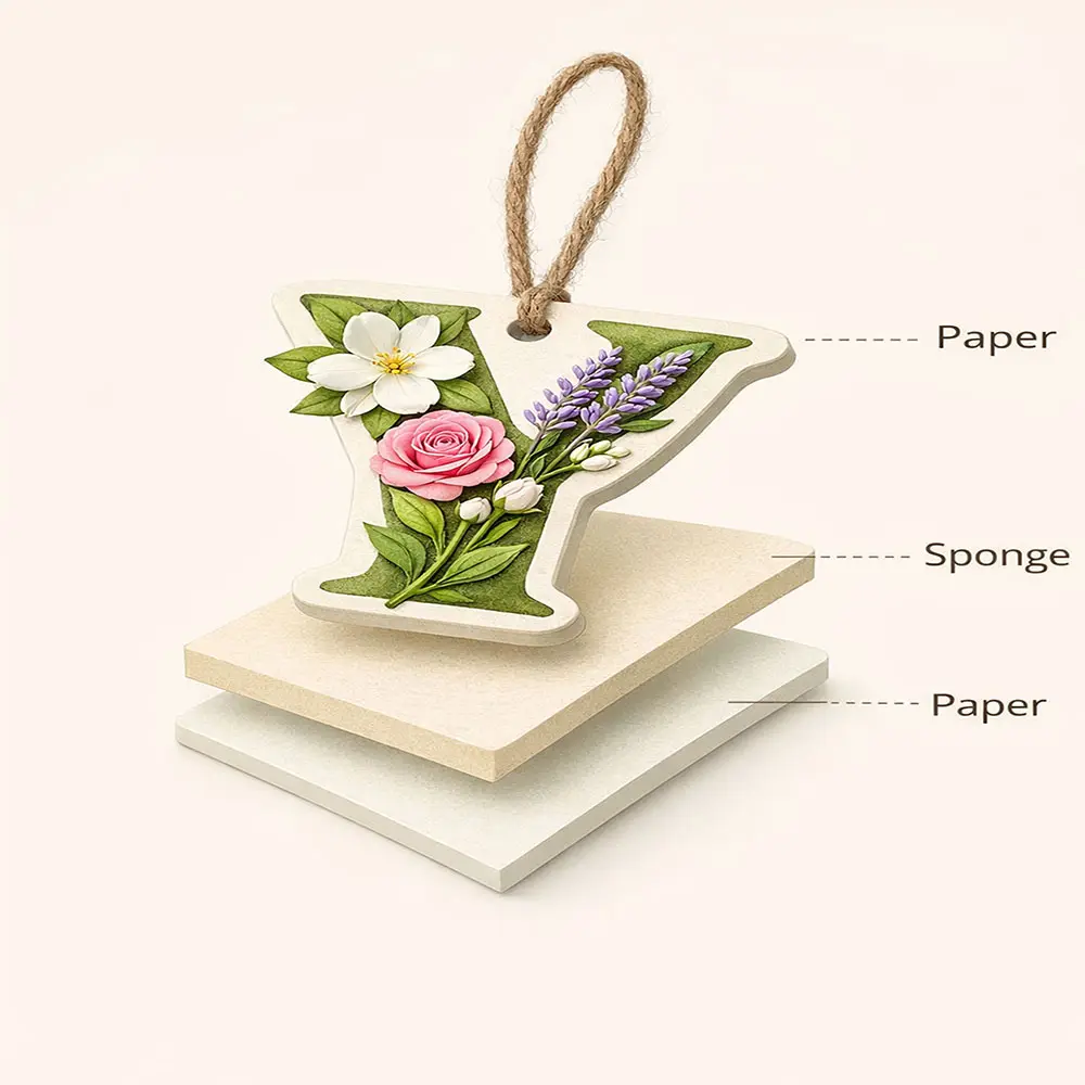 Crafted with a premium 3-layer structure (Paper + Sponge + Paper), it ensures a steady and long-lasting fragrance release while maintaining a lightweight and refined look. More than just an air freshener, it serves as a personalized decorative piece that reflects individual style.