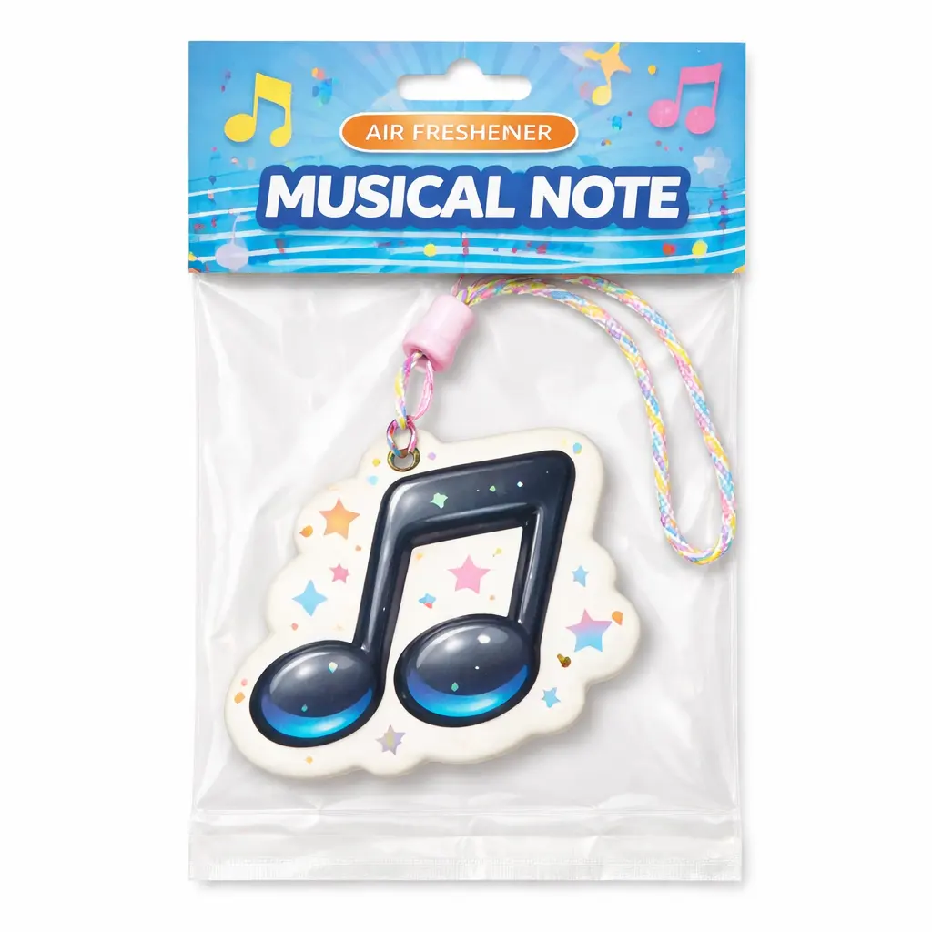 Celebrate everyday freshness with this vibrant Musical Note Paper Air Freshener. Featuring a playful, eye-catching musical note design with colorful star accents, each piece is crafted from premium absorbent paper and infused with long-lasting, natural-inspired fragrances. Perfect for car interiors, home decoration, gift sets, or promotional use, this hanging air freshener brings a refreshing and lively touch to any space. Fully customizable in shape, scent, and packaging, making it ideal for brands, retailers, and seasonal collections.