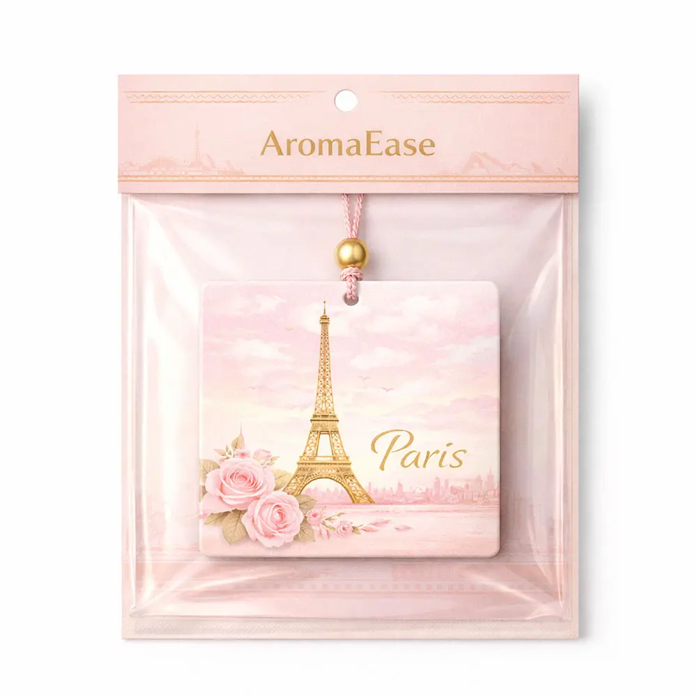 The Romantic Paris Fragrance Card captures the timeless charm and elegance of Paris in a beautifully designed scented air freshener. Featuring a delicate illustration of the Eiffel Tower paired with soft blooming roses, this design evokes a dreamy and romantic atmosphere, perfect for adding a touch of sophistication to any space.