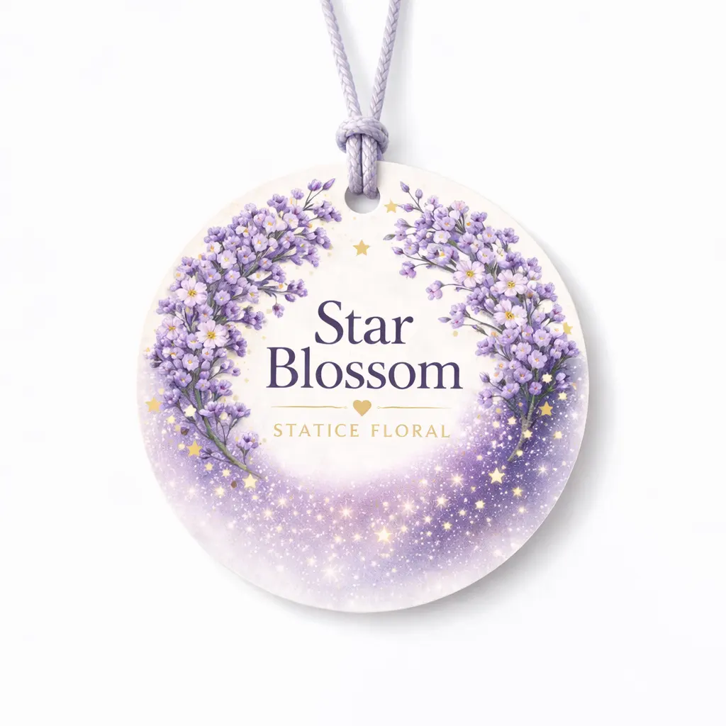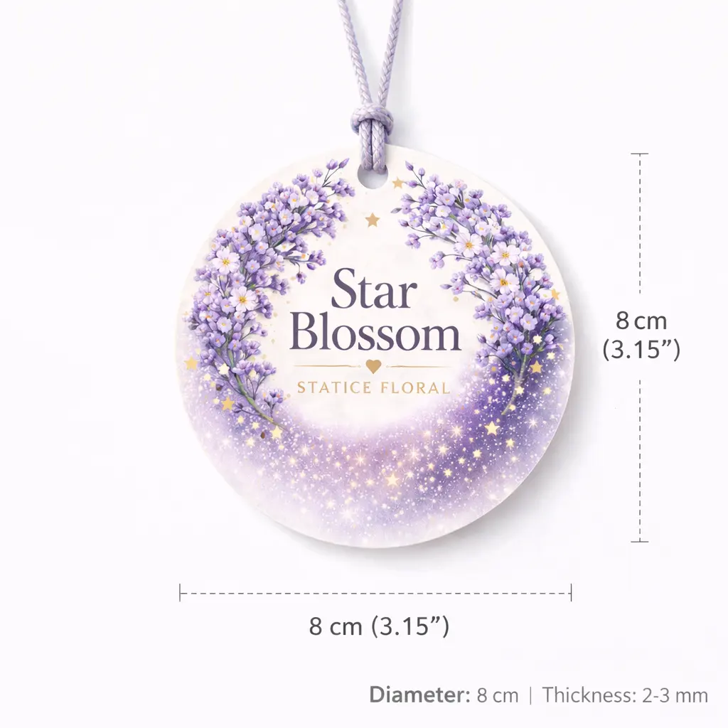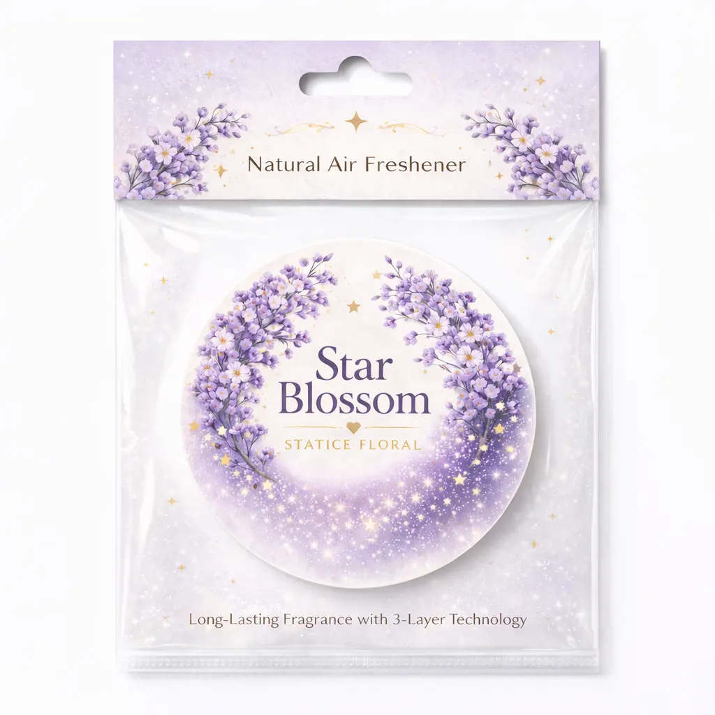 Bring a touch of elegance and tranquility to your space with the Star Blossom hanging air freshener. Inspired by delicate statice flowers and a dreamy starry night design, this beautifully crafted scented card combines soft floral fragrance with artistic charm.