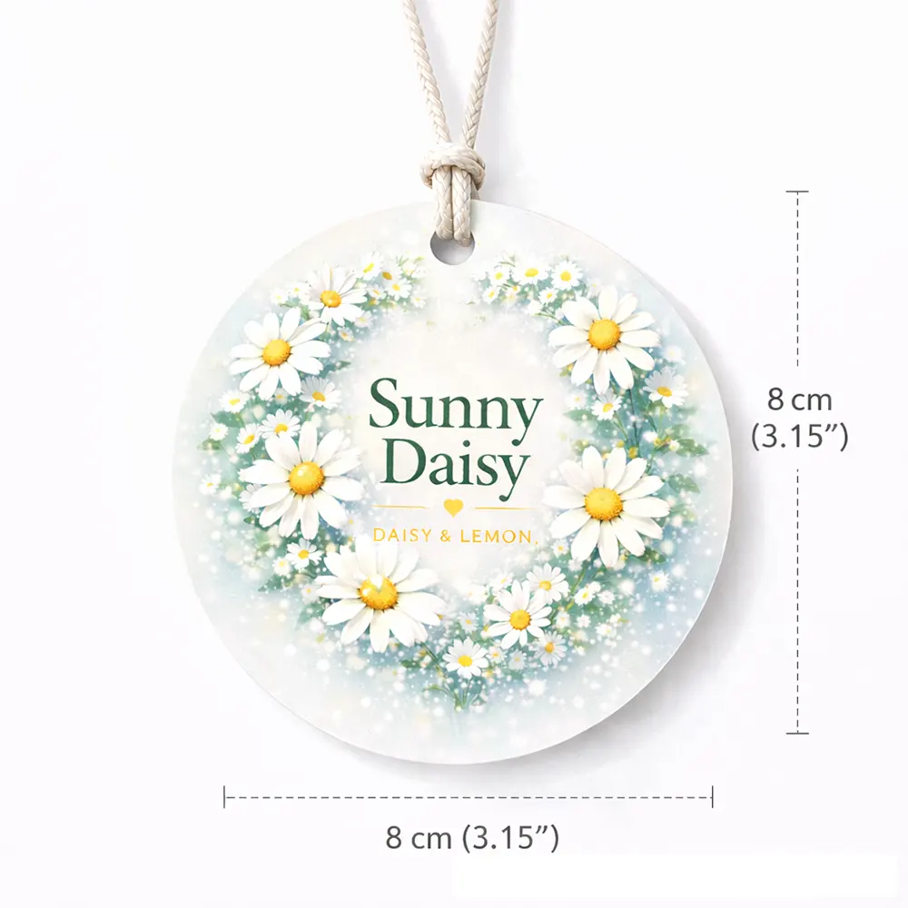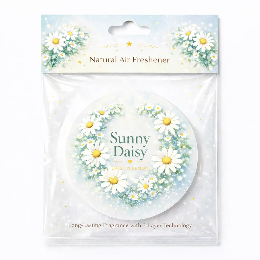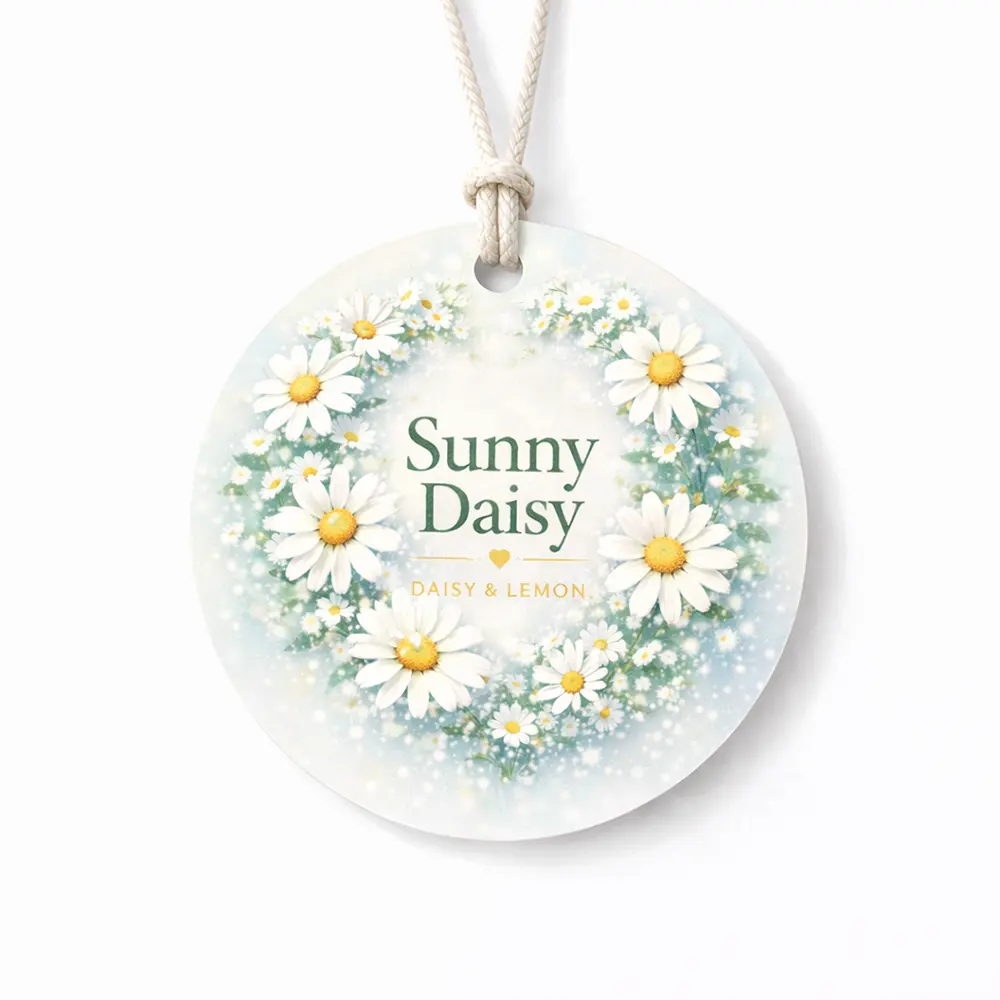 Bring a touch of nature and freshness into your space with this beautifully designed Sunny Daisy hanging air freshener. Featuring a delicate daisy wreath illustration and soft pastel tones, this scented paper card combines visual elegance with long-lasting fragrance.