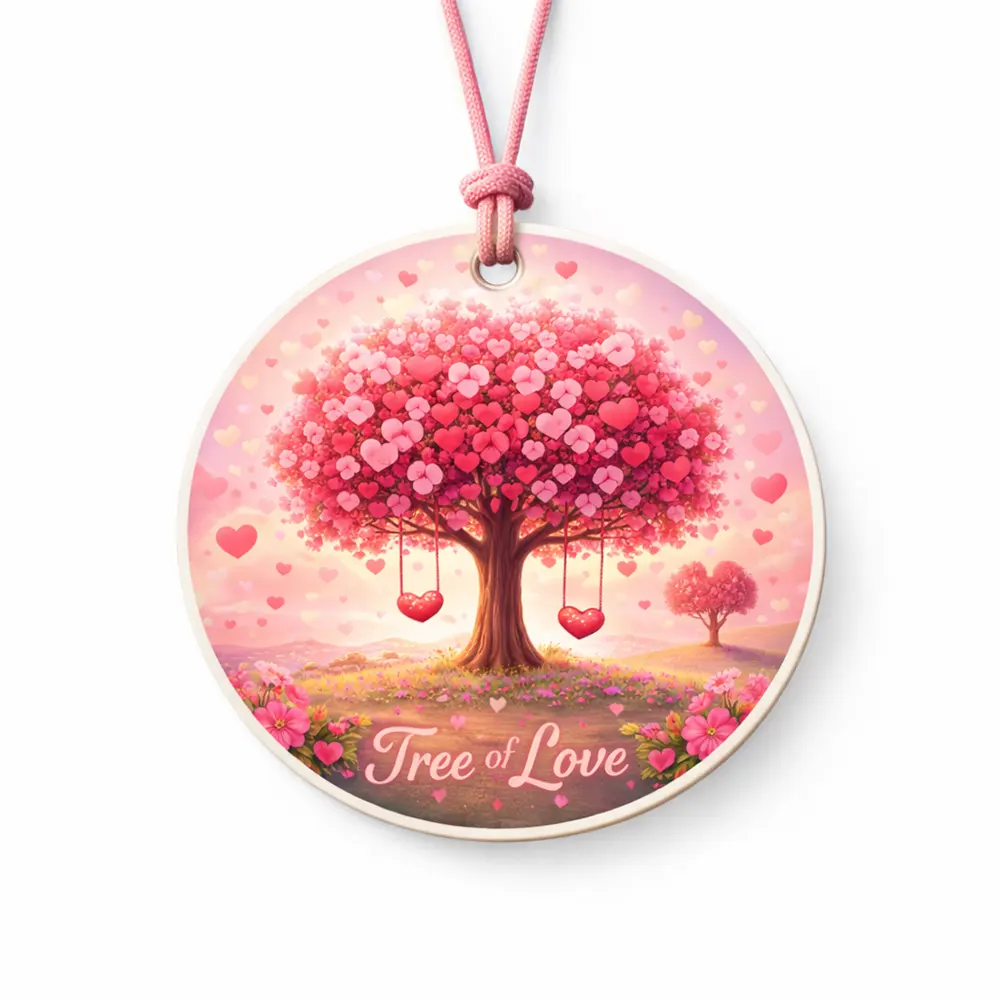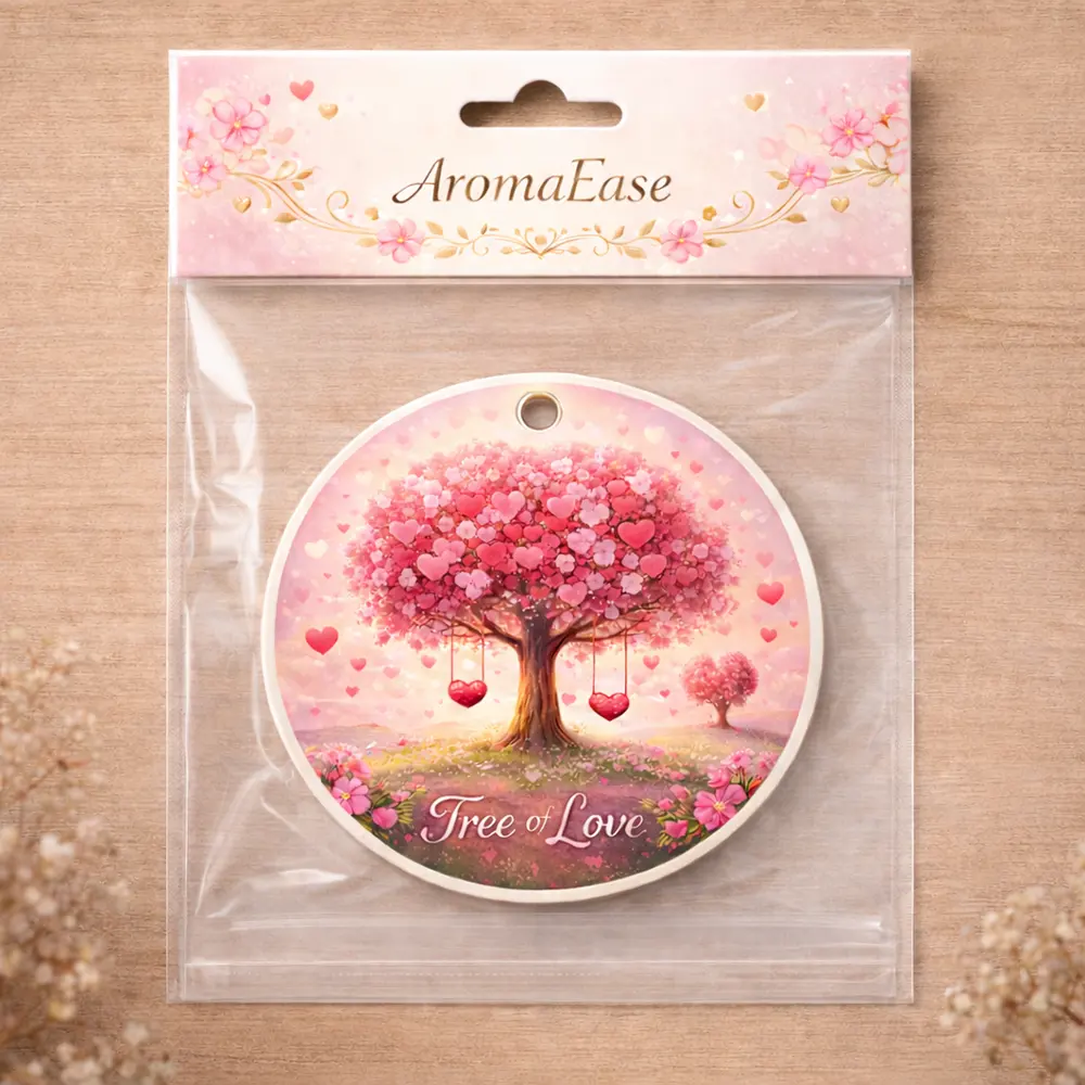 Elevate your space with this romantic Tree of Love car air freshener, a heartfelt gift for anniversaries, Valentine’s Day, or any love-filled occasion. Featuring a stunning design of a lush tree blooming with vibrant pink and red hearts, paired with the elegant "Tree of Love" lettering, this scented ornament brings a warm, loving vibe to your car, closet, or home. Infused with long-lasting fragrance, it not only freshens the air but also serves as a charming decorative piece. Perfect for gifting to your partner, family, or friends, this love-themed air freshener combines sweet scent and romantic decor in one delightful piece.